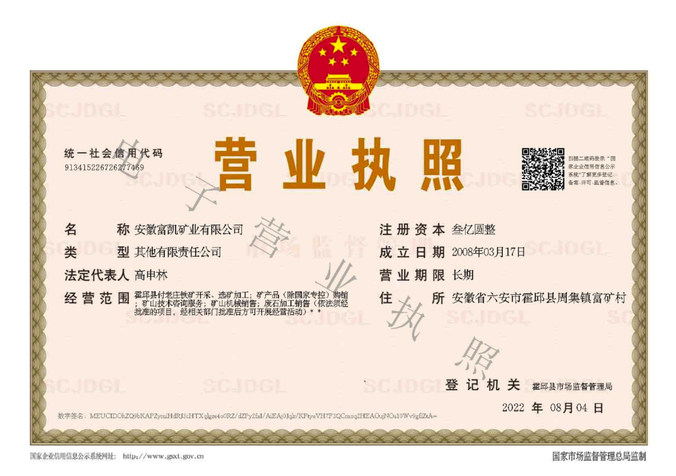 安徽富凱礦業有限公司成立于2008年3月,由安徽地礦投資有限公司和上海杭鋼凱暄礦產資源投資公司共同出資為開發霍邱縣付老莊鐵礦而設立的。      公司位于霍邱縣周集鎮,緊鄰阜六高速、阜六鐵路和105國道,距淮河12公里,交通較為便利。公司主要從事鐵礦石開采、加工、銷售等,注冊資金3億萬元,擁有專業技術和經營管理人員100多人。 &em...